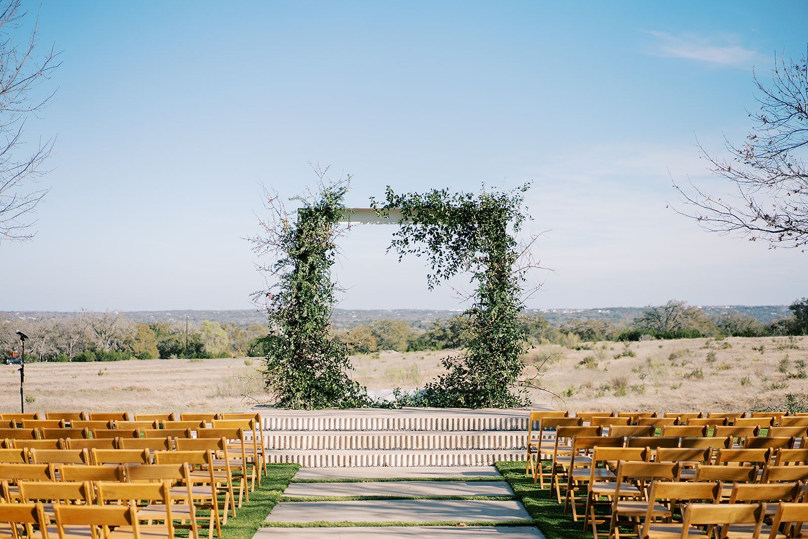 Prospect House is known for its striking contemporary design that seamlessly blends with the surrounding Hill Country landscape. The venue’s clean lines, white walls, and floor-to-ceiling windows showcase the natural beauty of the area while offering a modern aesthetic. The open-air ceremony space offers views of native grasses, rolling hills, and expansive skies. This fusion of minimalism and natural elegance makes Prospect House a perfect choice for brides looking for a distinctive and stylish setting.