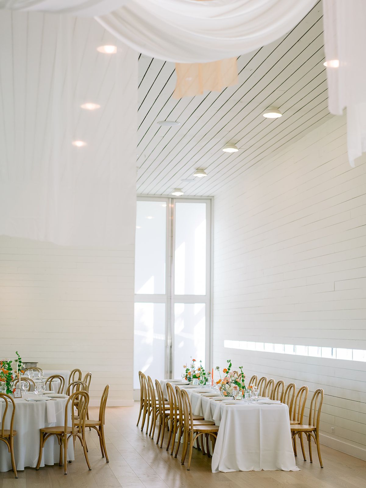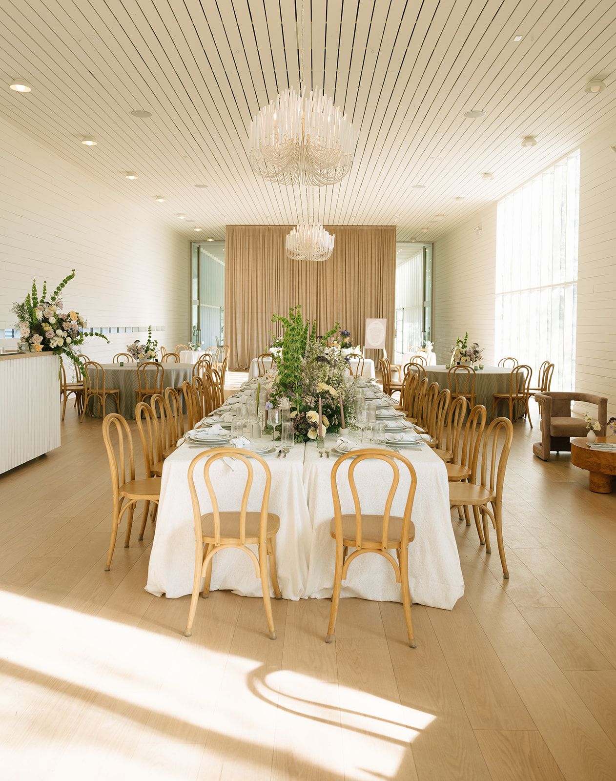 Thoughtfully designed to bring architecture and nature together, and set on 20 private acres, the venue features expansive glass walls, sweeping views, and a seamless connection to the surrounding landscape. Its crisp white design and clean architectural lines create a timeless, airy backdrop that complements any wedding style.